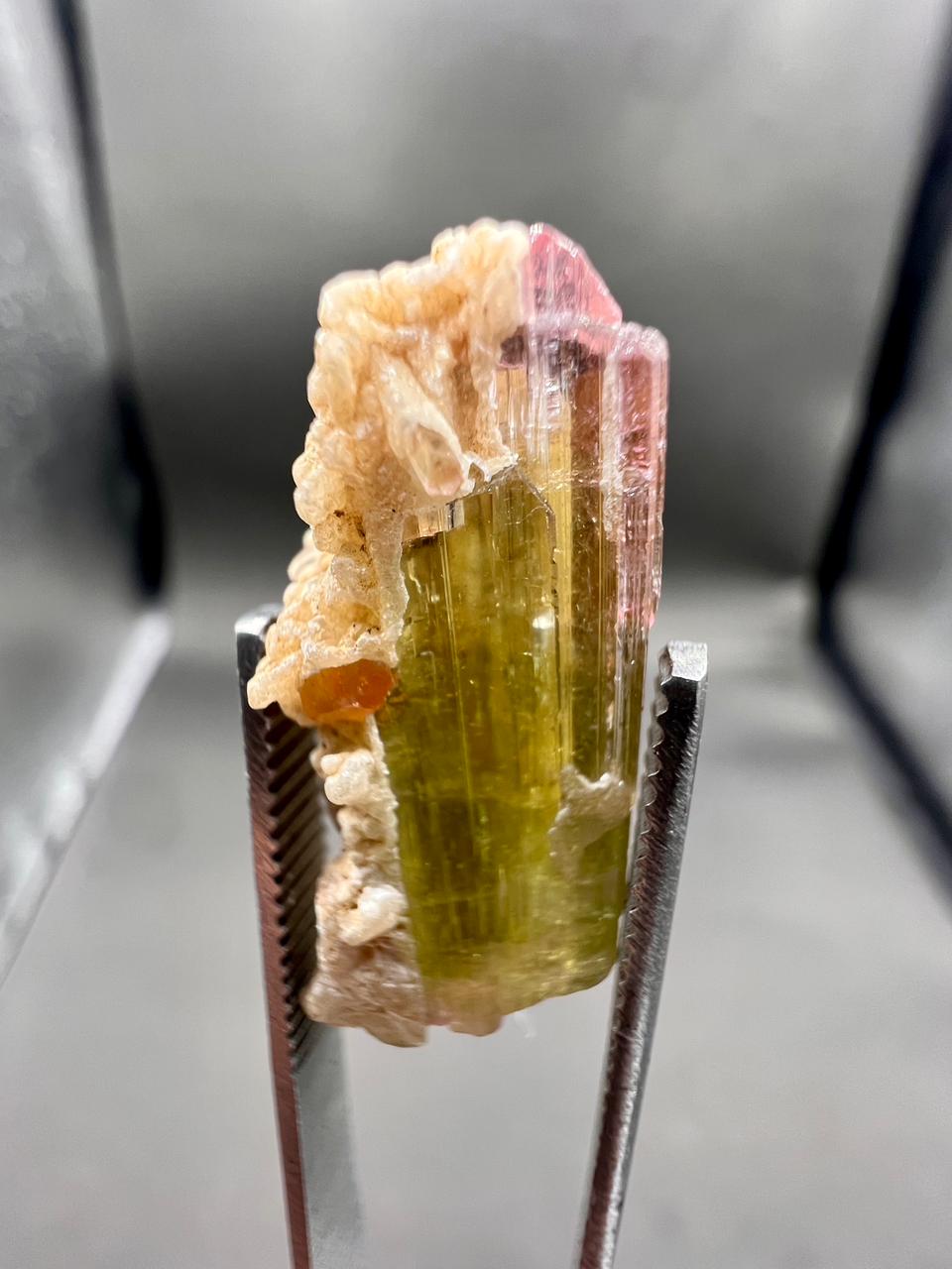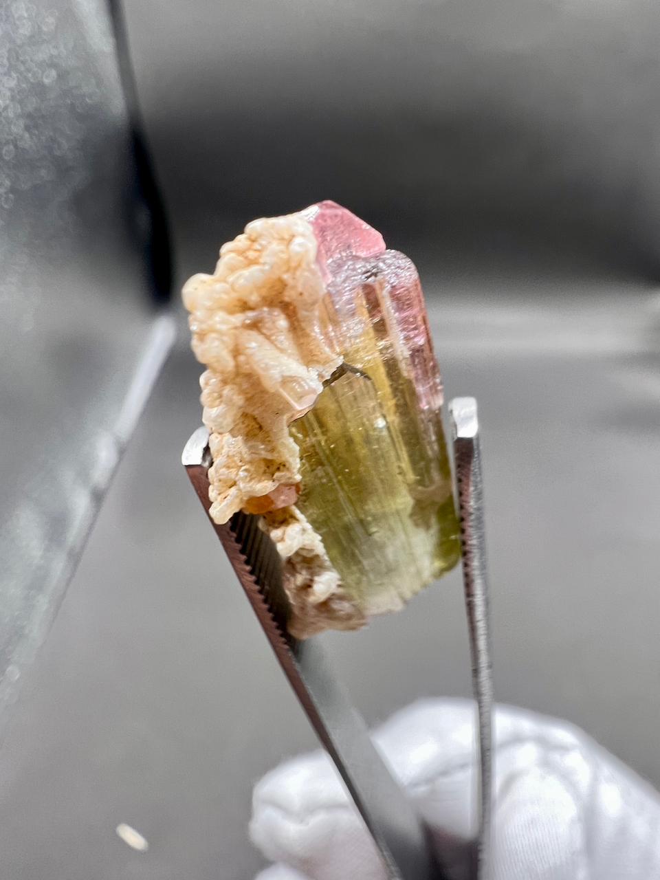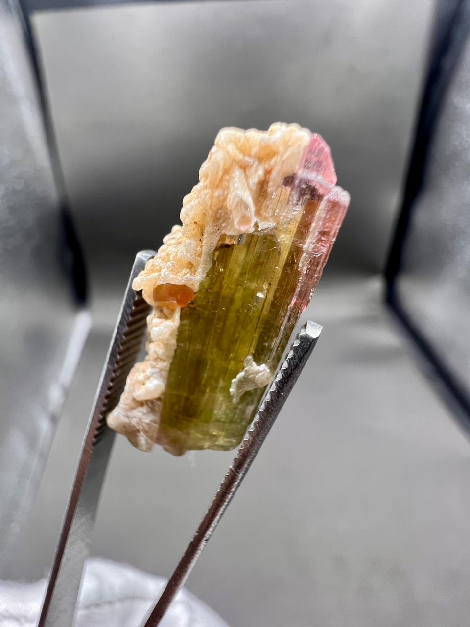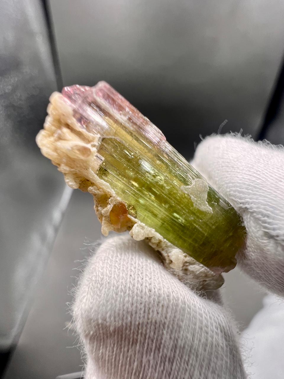 This Tourmaline Crystal Bi-Color Crystal Specimen is a natural, collector's item from Afghanistan. Known for its vibrant colours and unique patterns, tourmaline is a popular mineral among collectors. This specific specimen showcases the natural beauty of tourmaline crystals, making it a valuable addition to any collection of minerals and crystals. Its natural shape adds to its allure, making it a desirable piece for those who appreciate the beauty of nature 4 gram.