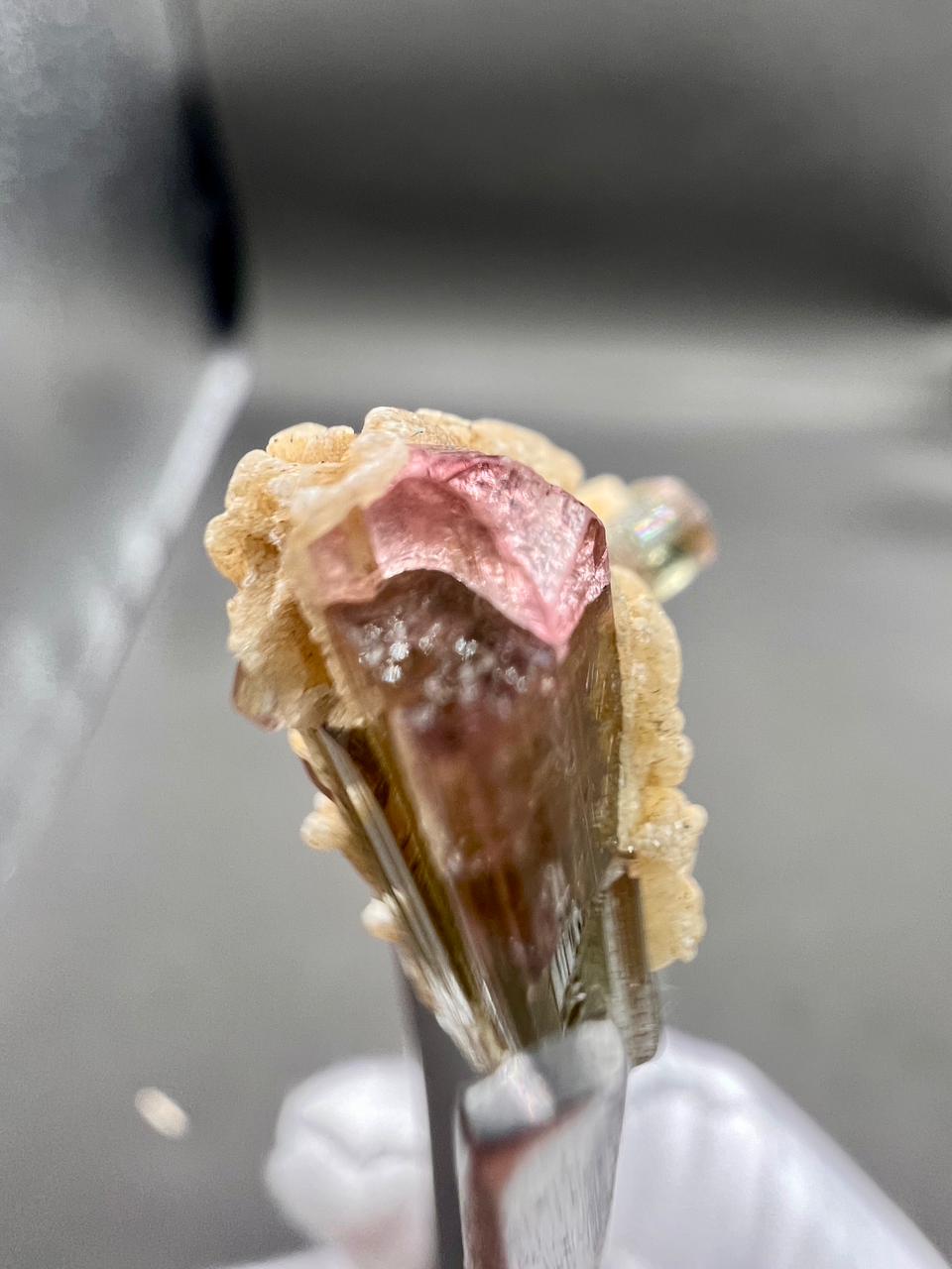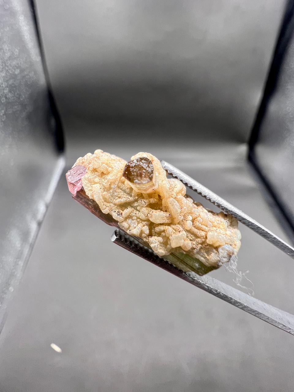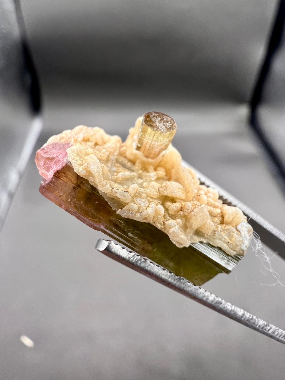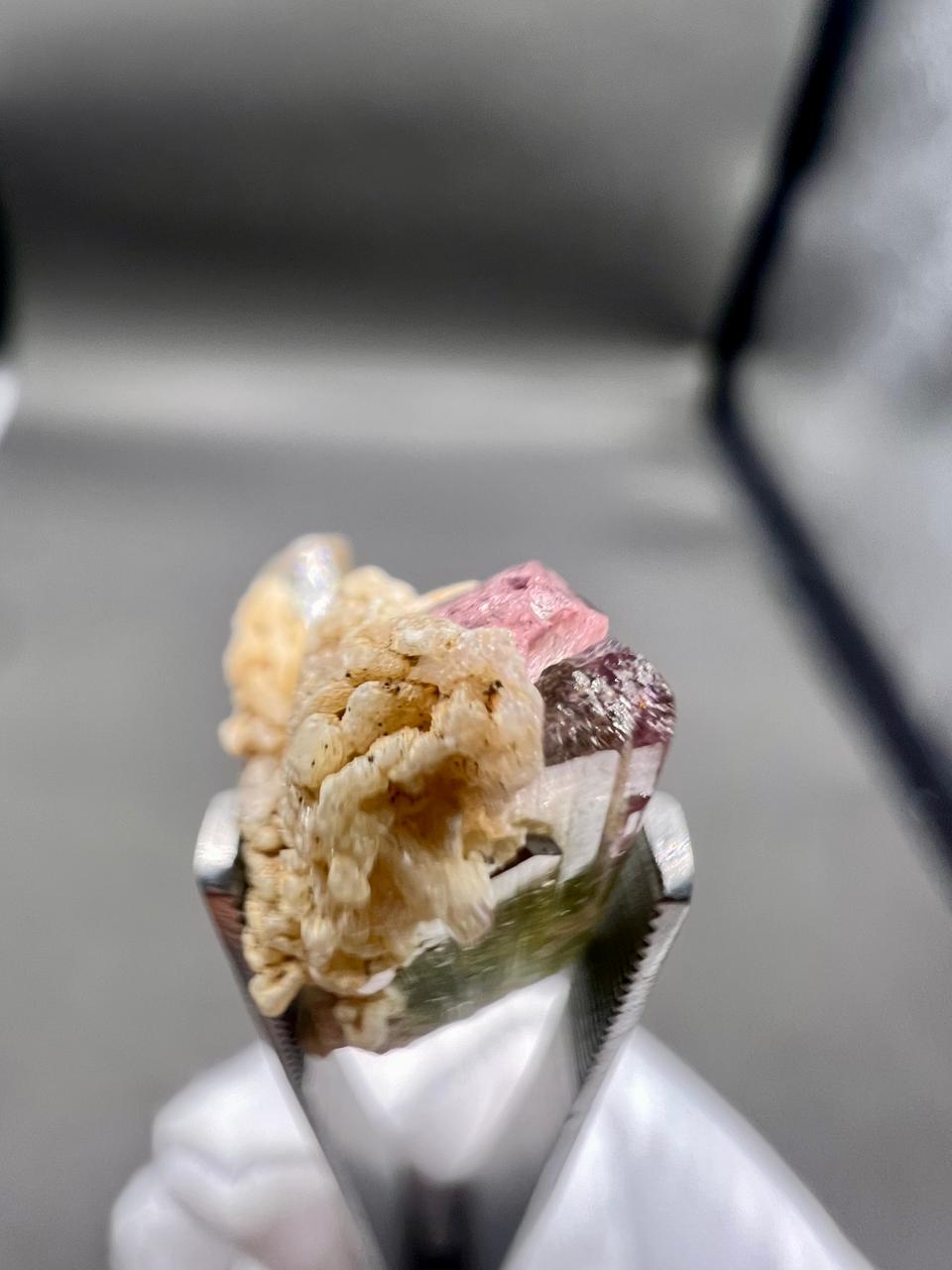 This Tourmaline Crystal Bi-Color Crystal Specimen is a natural, collector's item from Afghanistan. Known for its vibrant colours and unique patterns, tourmaline is a popular mineral among collectors. This specific specimen showcases the natural beauty of tourmaline crystals, making it a valuable addition to any collection of minerals and crystals. Its natural shape adds to its allure, making it a desirable piece for those who appreciate the beauty of nature 4 gram.